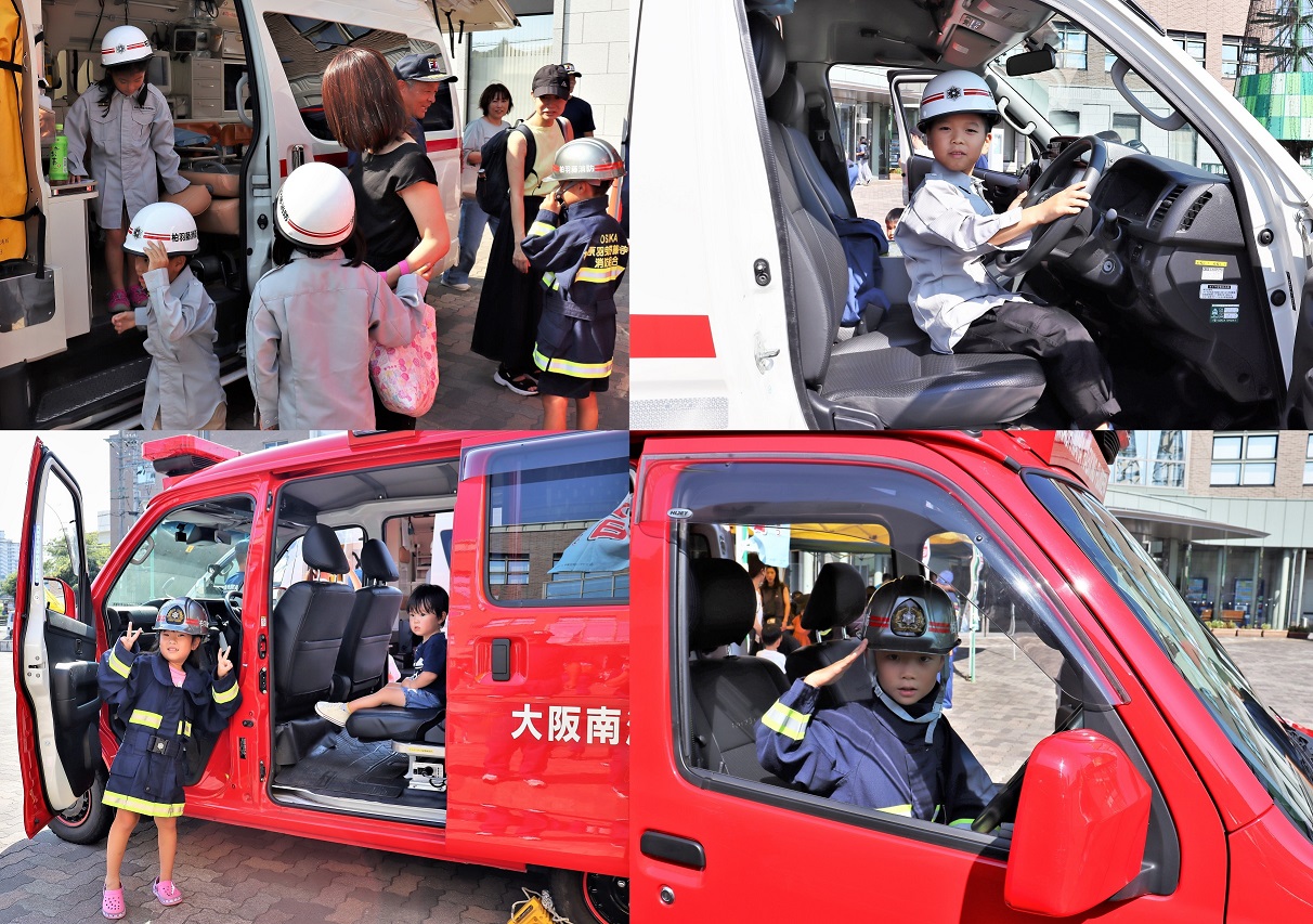当日は天候に恵まれ、多くの方々が足を運んでくださり、こどもたちは救急服や防火衣を着て救急車等と一緒に記念撮影をしたり、こども救命講習では、胸骨圧迫とAEDの操作を一生懸命、楽しみながら体験していました。