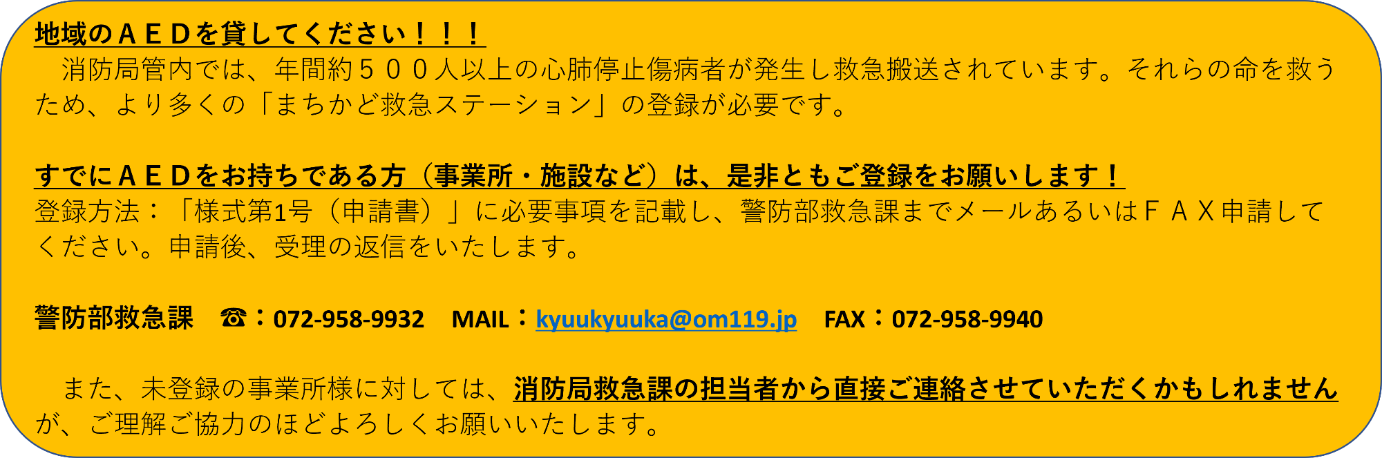 大阪南消防局まちかど救急ステーション事業 ※まちかどAED
